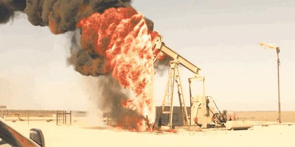 Meanwhile, an aging oil well suffered a blowout. Out of the entire crew, only one survived; the other three workers were burned to a crisp on the spot.